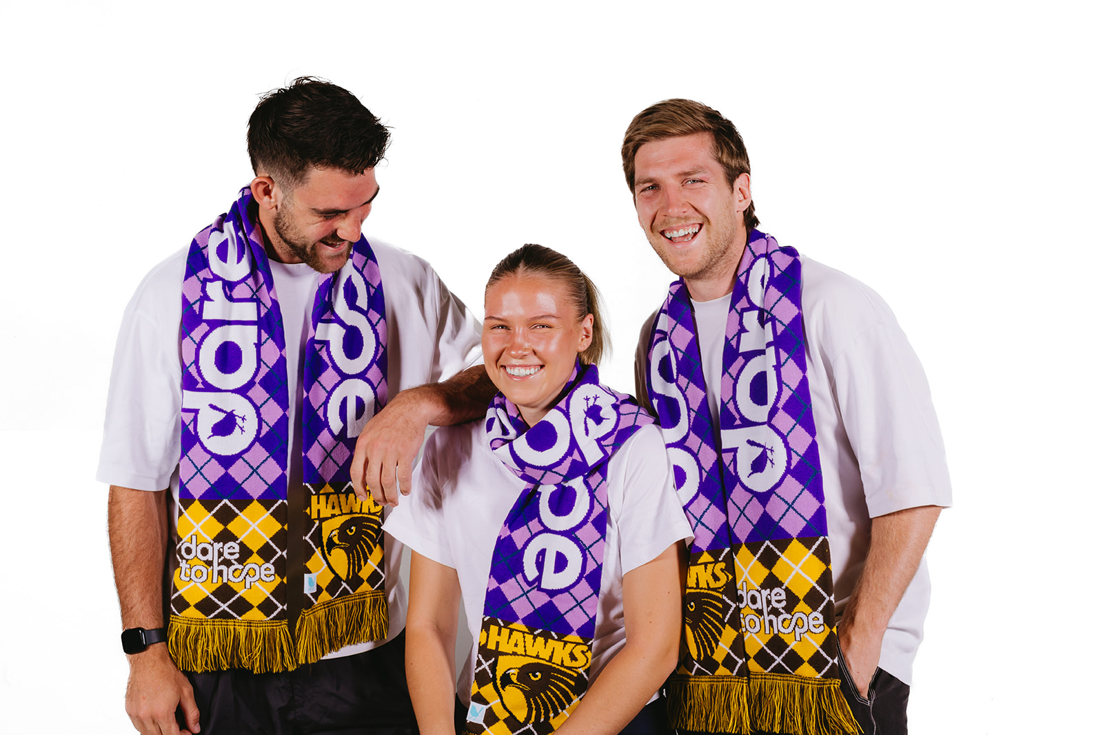 Our Limited Edition Hawks Supporter Scarf is designed especially for supporters of the mighty Hawthorn Football Club who want to stand with Dare to Hope while backing their team in style.