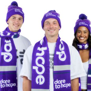 Take a photo in your scarf and tag Dare to Hope @daretohopeau on socials #daretohope #purpletheg #pancreaticcancerawareness